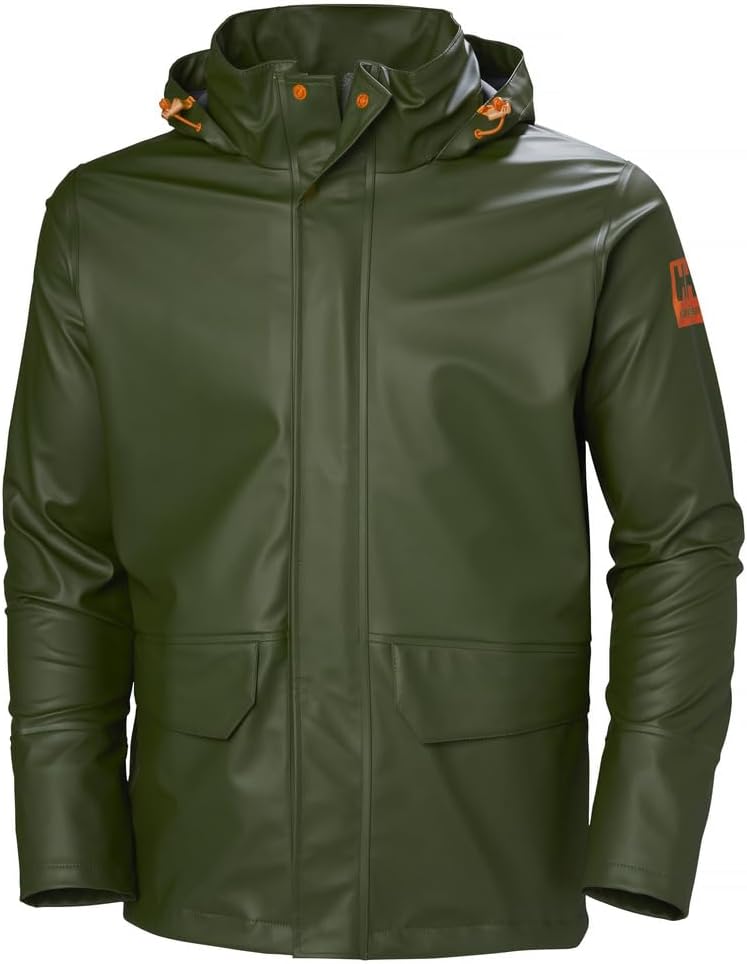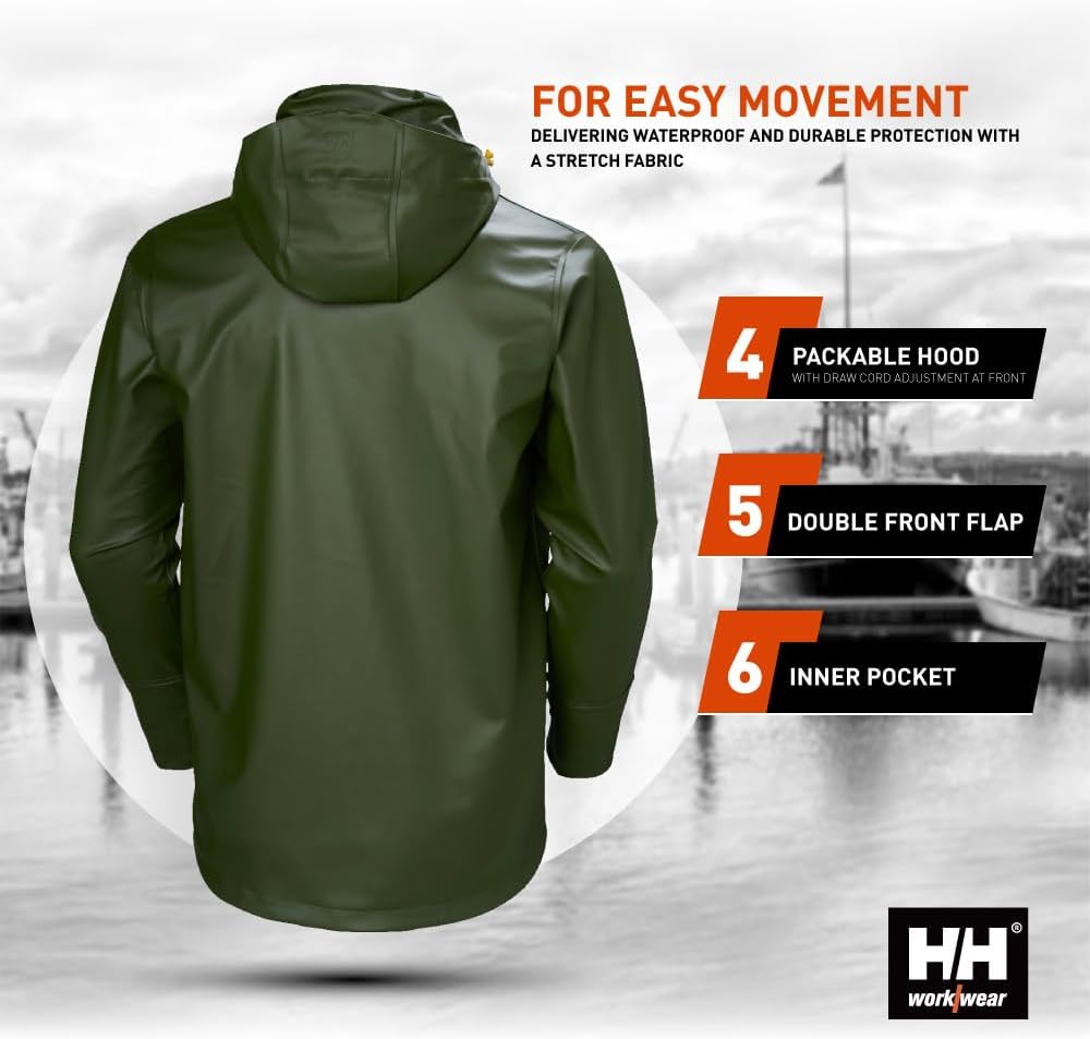 Workwear Gale Men’s Waterproof Rain Jacket – Heavy-Duty PU Polyester Windbreaker – Packable Hood & Hem